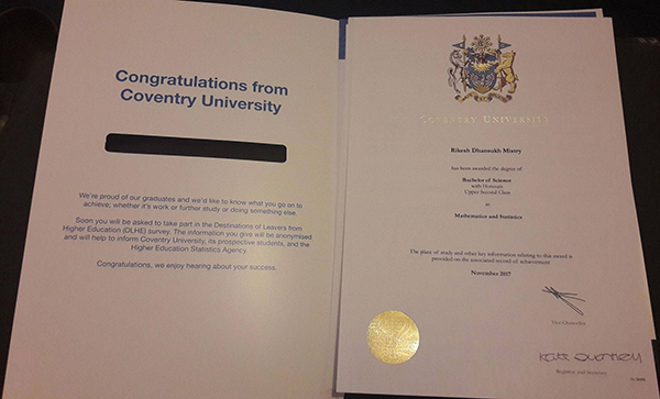 英國考文垂大學(xué)畢業(yè)證書樣本(原版)